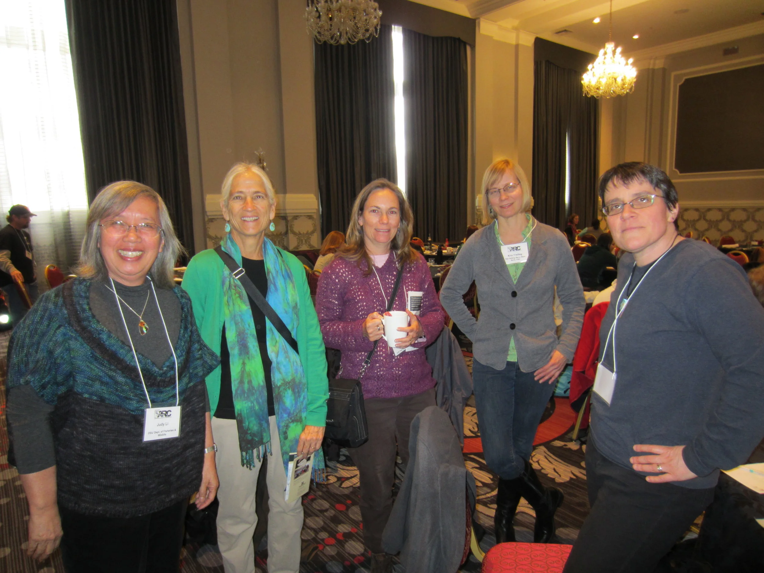 Sharman Apt Russell (second from left) and Celeste Searles Mazzacano (far right) with meeting participants.